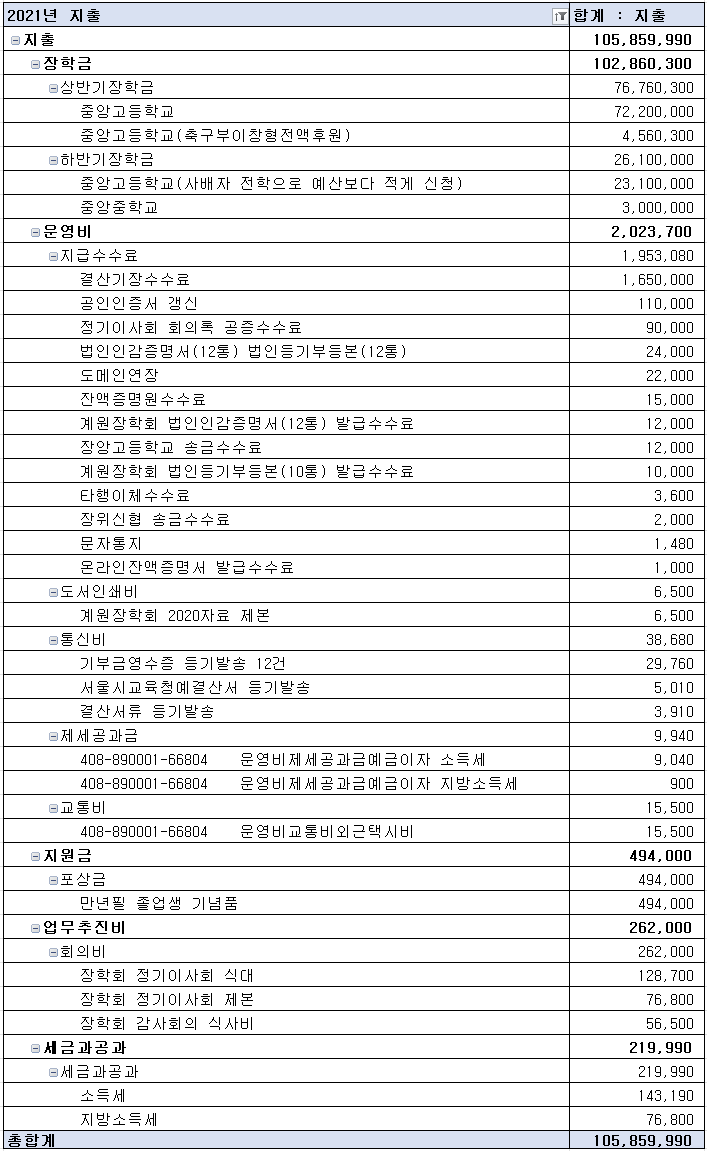 | 기타-동곡장학금 | 10,000,000 | 단체-42회동기회 | 10,000,000 |